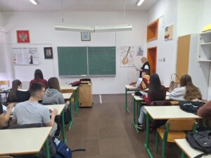 U okviru redovne nastave, na času CSBH jezika i književnisti, porofesorica Nataša Despotović održala je sa učenicima odjeljenja II-5 ugledno – ogledni čas pod nazivom Gusle u Gorskom vijencu više od muzičkog instrumenta.