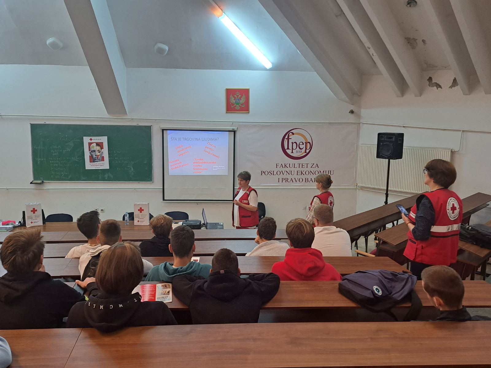 Evropski dan borbe protiv trgovine ljudima se obilježava 18. oktobra. Tim povodom Učenički parlament je u amfiteatru škole ugostio predstavnice Crvenog krsta koje su učenicima ukazale na opasnost i poslijedice koje nosi ovaj problem i govorile o mjerama zaštite za mlade ljude koji su najčešće žrtve trgovine ljudima.