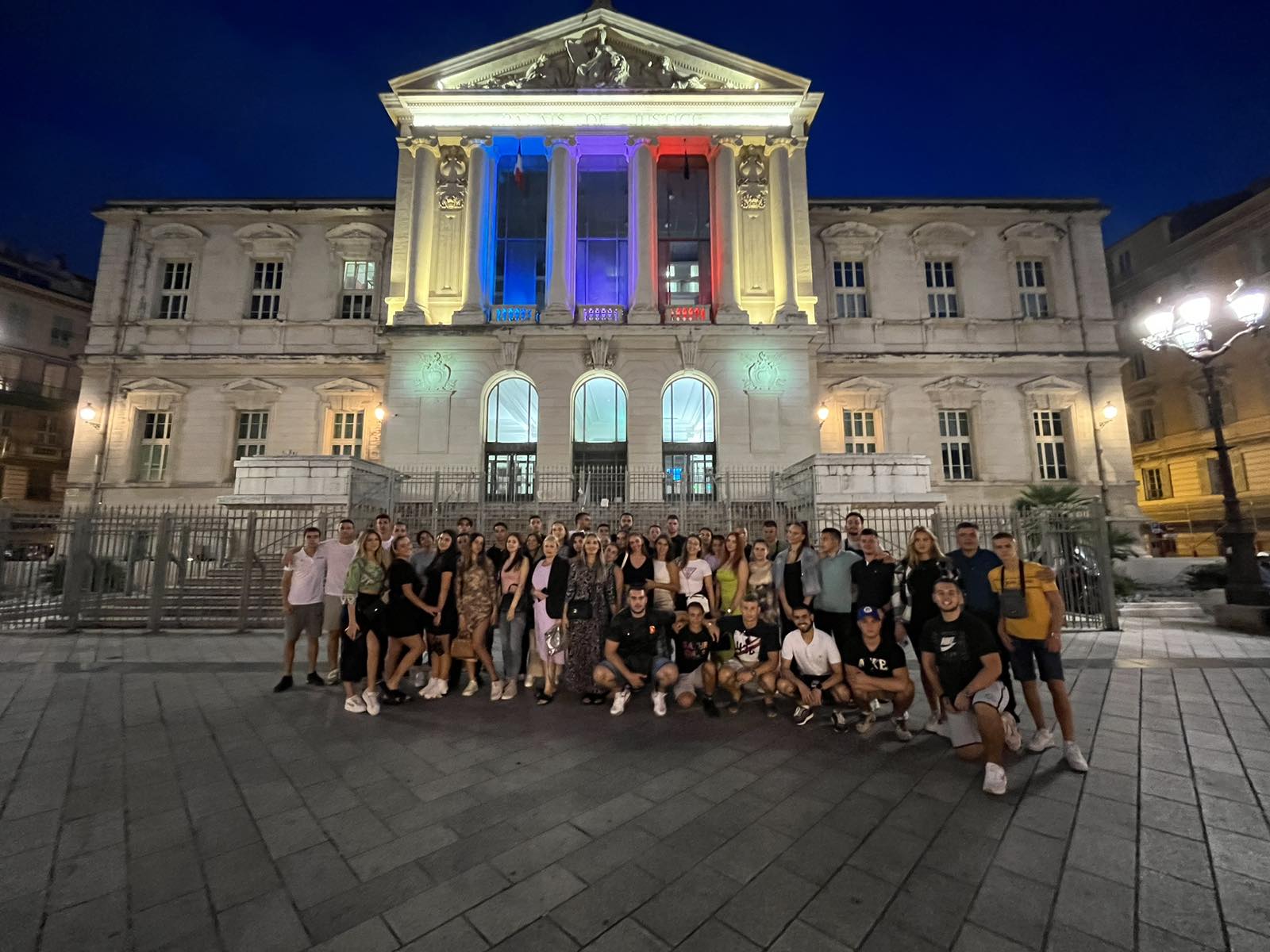 Osmi dan našeg putovanja počeo je putovanjem ka Azurnoj obali gdje smo dan proveli u obilasku Nice. Čuvena grofovija Nica, grad u zalivu anđela oduševila nas je svojom otmenošću,a ono što smo imali priliku da vidimo bilo je poznato Englesko šetalište, trg Masena prepoznatljiv po građevinama crvene boje, Fontanu sunca, Spomenik mrtvima na trgu Ginemer, trg Garibaldi, kao i trg Rossetti.