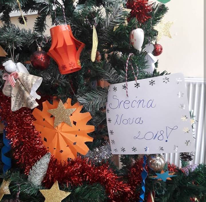 Programu je prethodilo kićenje jelke u holu škole. Učenici su iznijeli neke zanimljivosti o ovom, u početku paganskom običaju iz Starog Rima, koji je prvo počeo u Njemačkoj u 16.vijeku. Tada se jelka najčešće ukrašavala crvenim jabukama. U našim krajevima ukrašavanje jelke postalo je popularno tek u drugoj polovini 19.vijeku širenjem germanskog uticaja.