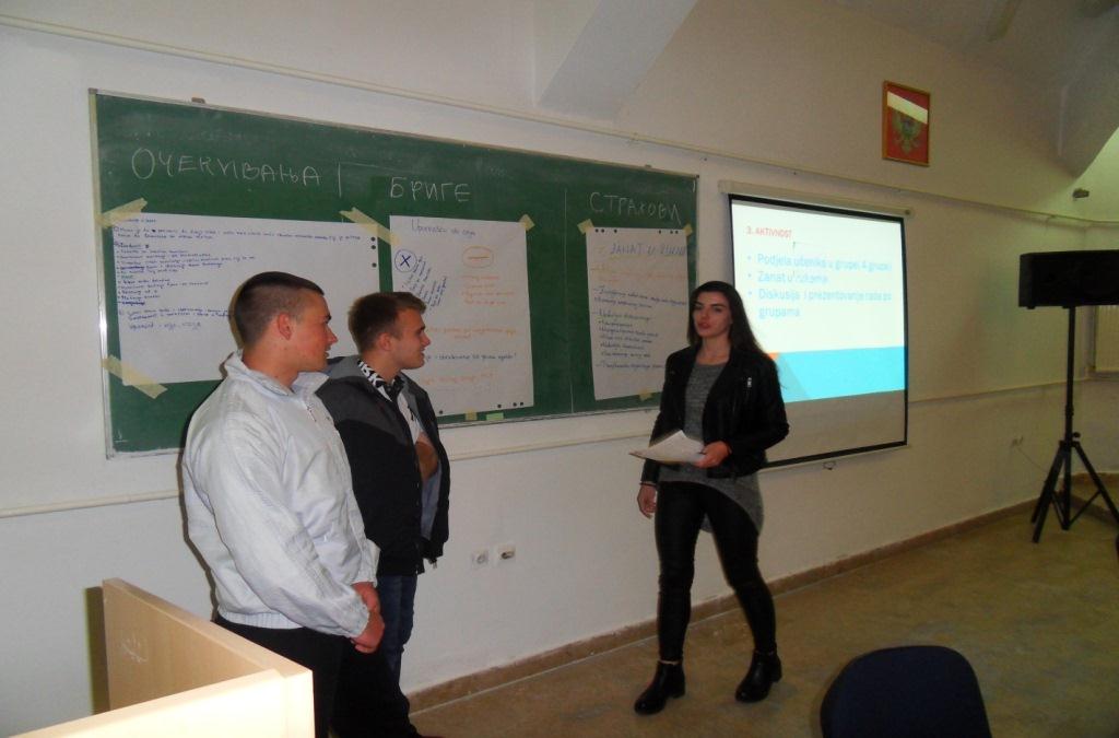 Kroz igru, druženje i zajednički rad, predstavnici parlamenata realizovali su radionicu : ,, JA u svijetu zanimanja“. Radionica je u svom scenariju imala niz aktivnosti, u kojima su učenici bili maksimalno angažovani. Kroz igru upoznavanja, drvo očekivanja, briga i strahova pri izboru srednje škole, preko analize zanatskih i četvorogodišnjih zanimanja iz svog ugla i stečenog iskustva, izrade plana karijere za 5 godina i raskrsnice na putu nastavka školovanja nakon srednje škole, učenici su dali puni doprinos i iznijeli niz konstruktivnih stavova i zapažanja o srednjem stručnom obrazovanju i barijerama koje treba prevazići u nastavku školovanja.